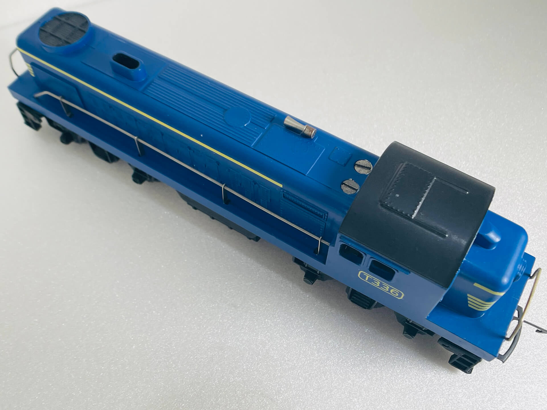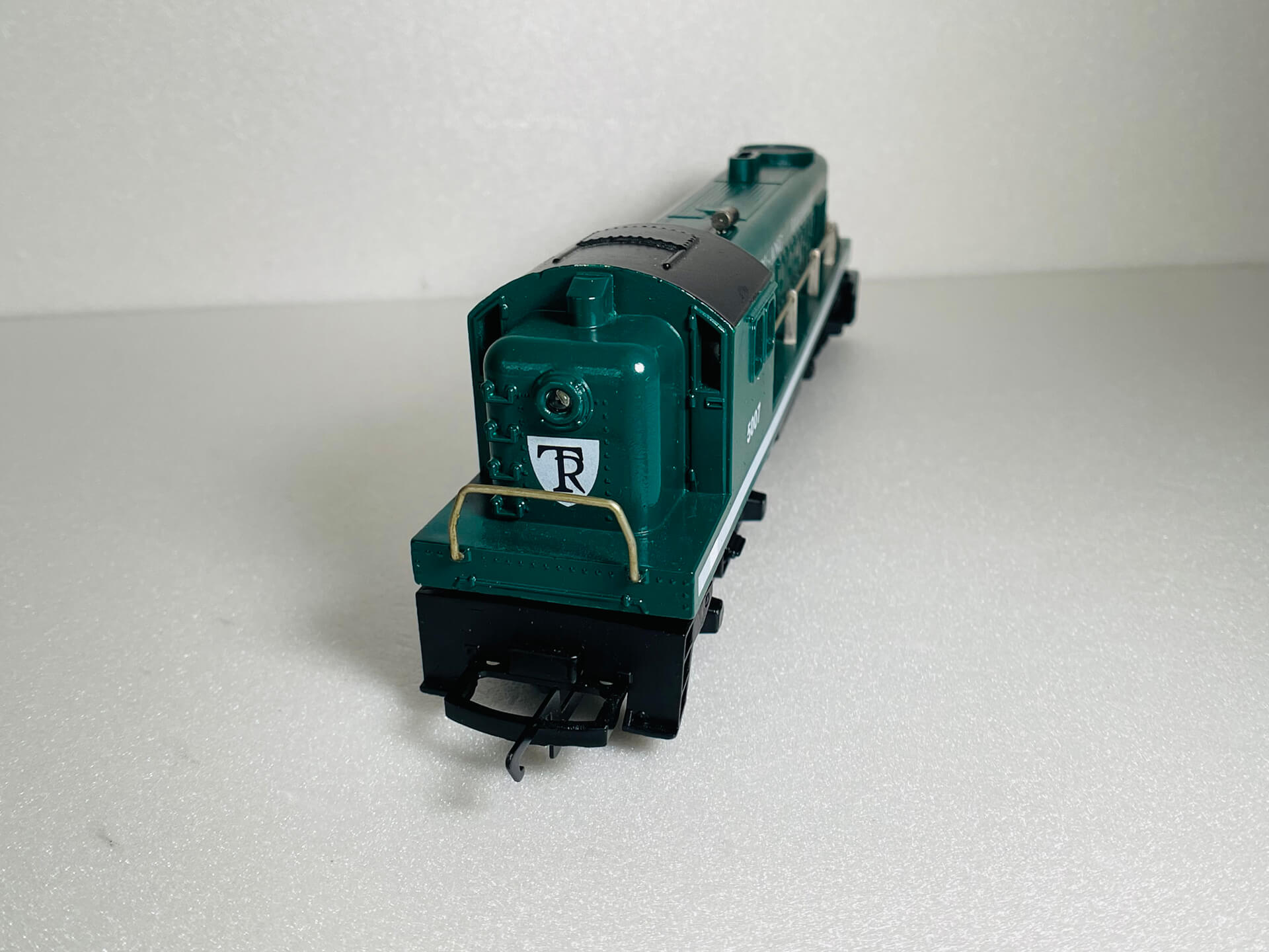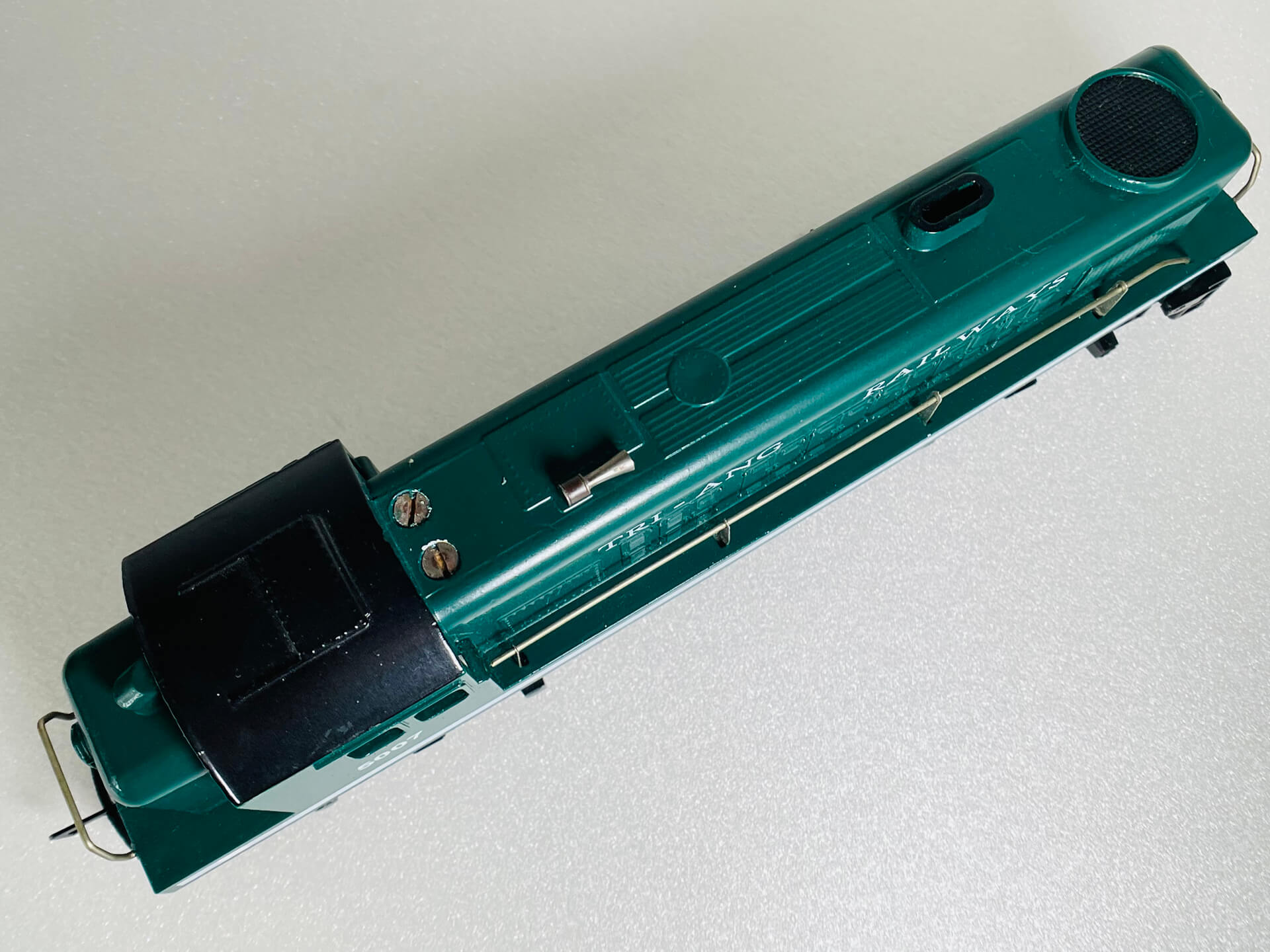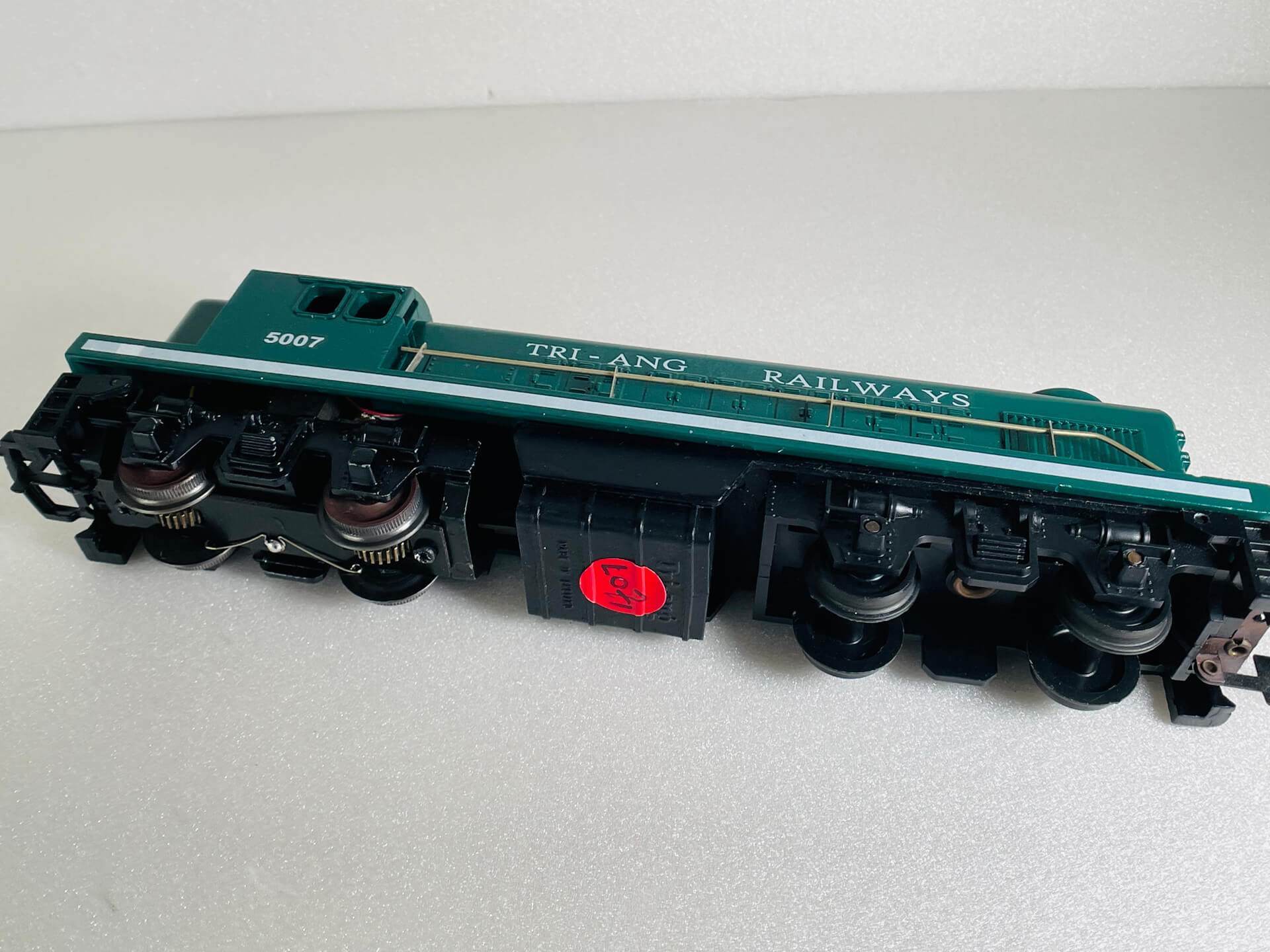 This diesel locomotive was made by Tri-ang, a company famous for producing affordable, plastic-bodied OO gauge model trains. This one is no exception (see images)! It was originally produced in the 1950's in various liveries with this variation T.R. 5007 R155 produced between 1957 & 1964. This particular model, has the body type 2 with sliding cab roof detail.